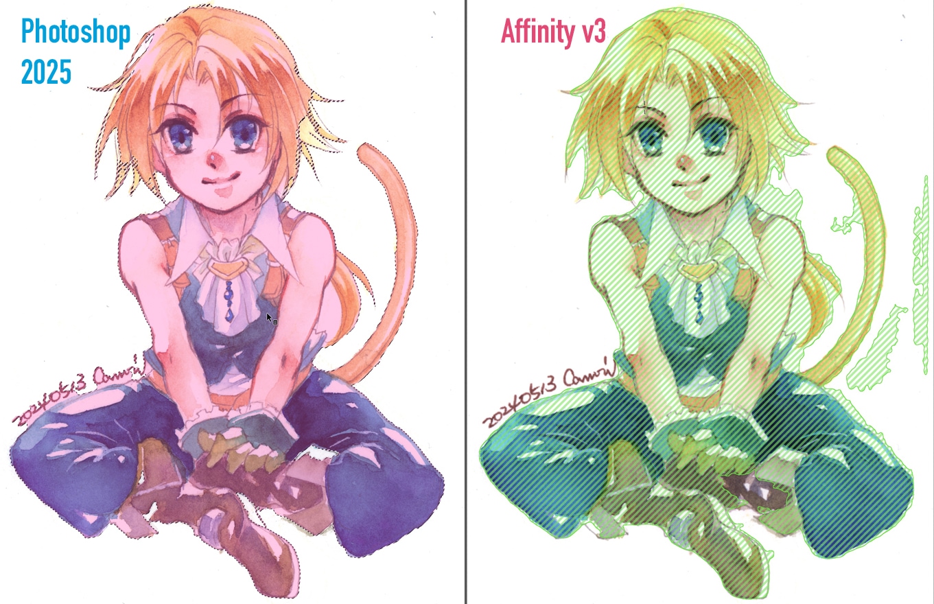 Affinity Photoにオブジェクト選択ツールが実装されたのが2.6からなので、この辺りのノウハウがまだそこまで蓄積されてはいなさそう…と思っていたのですが、1クリックでこれだけ認識できているのであれば問題なさそう。