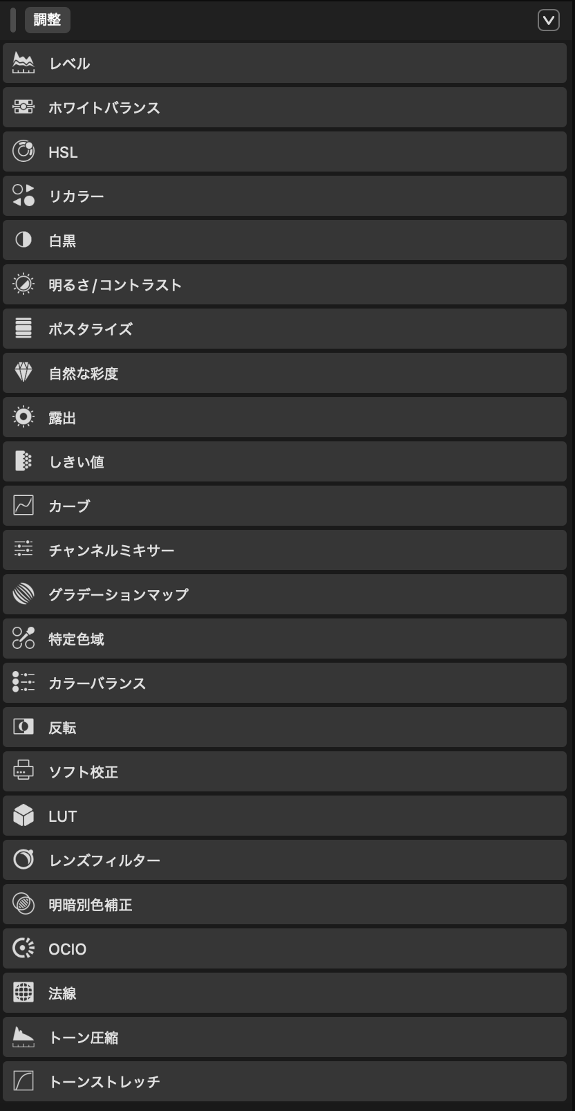 なお、どの調整メニューにもプリセットが数種類プレビュー付きで用意されているのですが、まあまあ悲惨な事になりかねないのでプリセットは使わない方が良いかなと感じました…